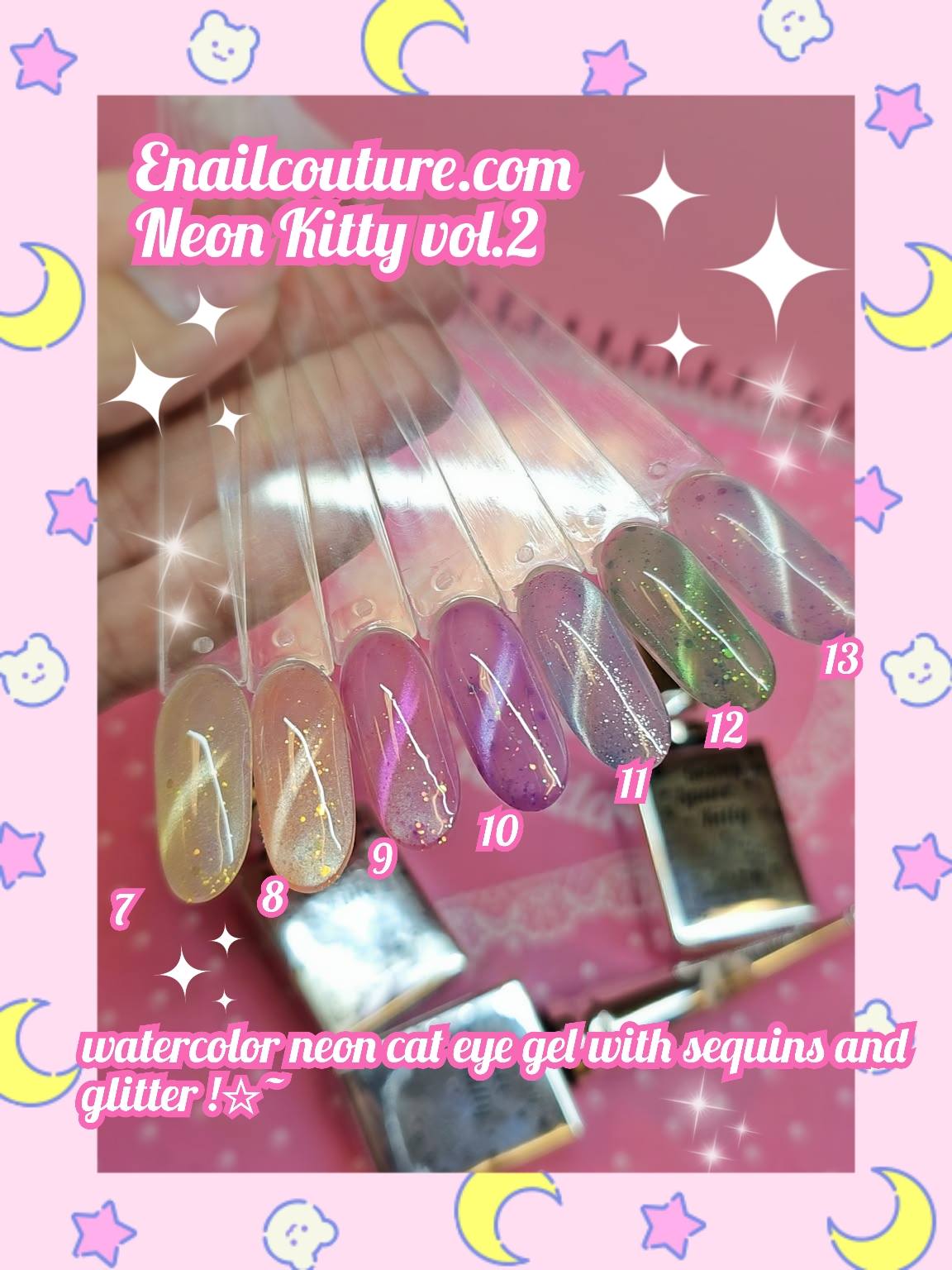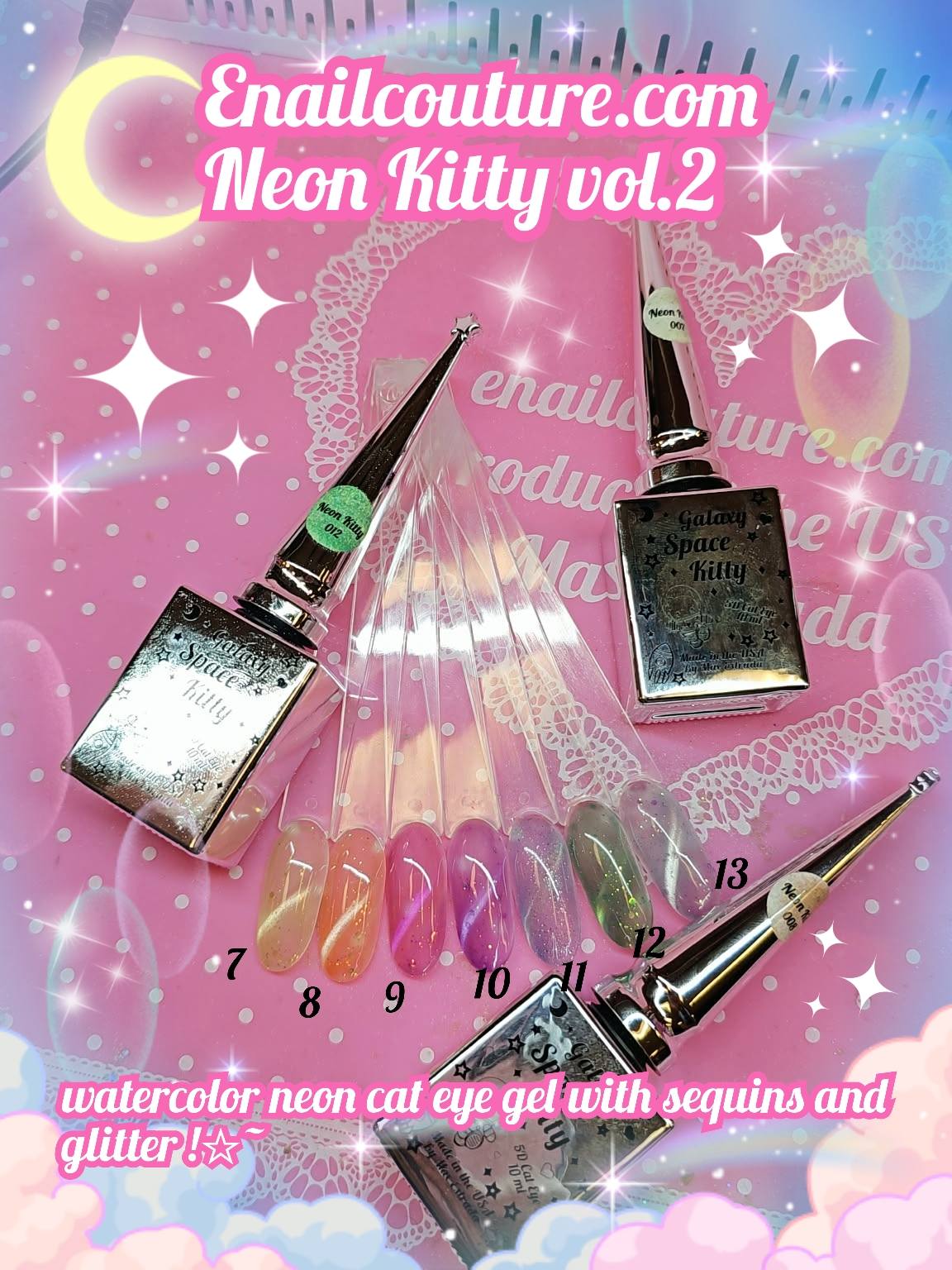 Moon Sailor space galaxy kitty gels!~ (jellybean NEW 5d cat eye color gels)(Magnetic Gel Polish Auroras Snowlight Cat Eye Gel Shining Glitter Soak Off UV Gel Polish )