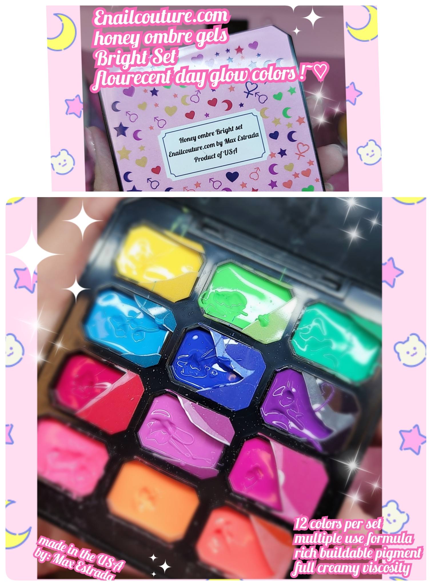 Honey Ombre Bright Set Fluorescent !~ (Gradient Painting Gel, 12 Colors Ombre Gel Nail Polish for Ombre Nails Aura Nails, French Manicure DIY Nail Art Long Lasting,Palette Fairy Spring)