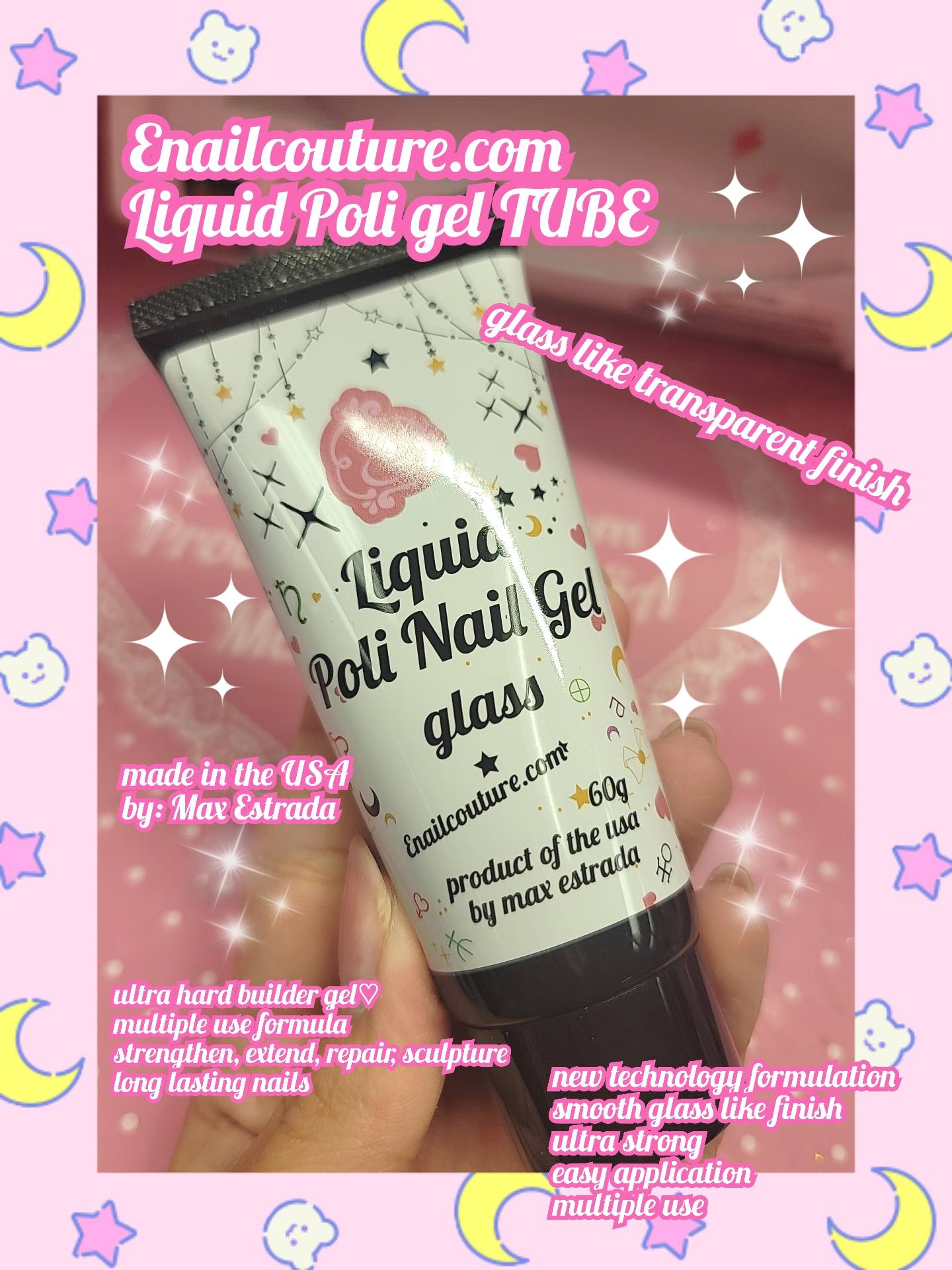 TUBE Liquid Poli Nail Gel Glass (Ultra Hard Builder Nail Gel: 60g Clear Plant-Based Hard Gel for Nails Mica Vitamin E Castor Oil U V 3D Nail Extension Gel Strengthening & Thickening)