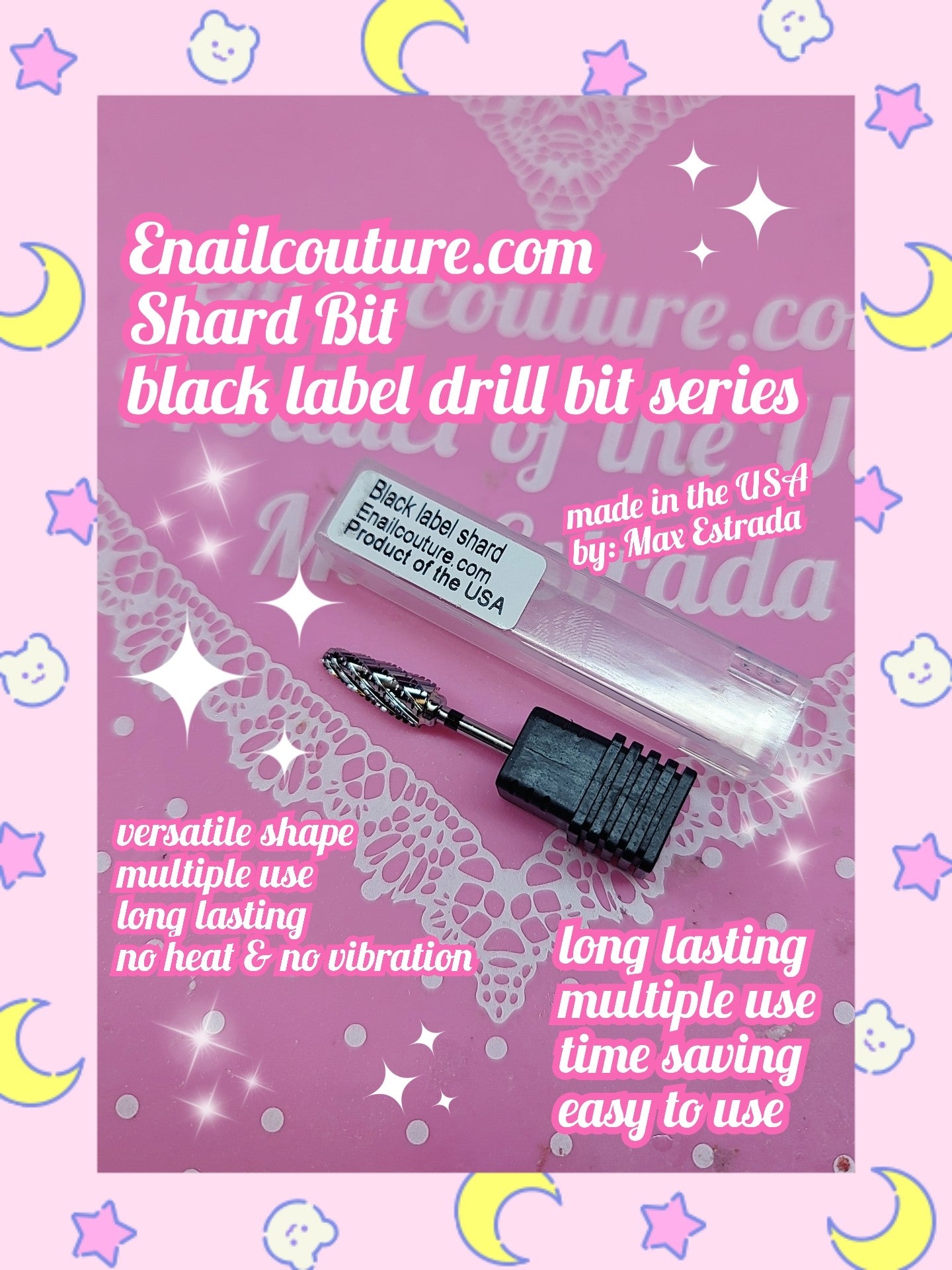 Shard Black Label Drill Bit (Nail Drill Bit Grinding Heads Carbide Machine Accessories for Manicure Remove Acrylic or Hard Gel Polygel, 3/32 Inch Professional Bits for Nail Cutter)